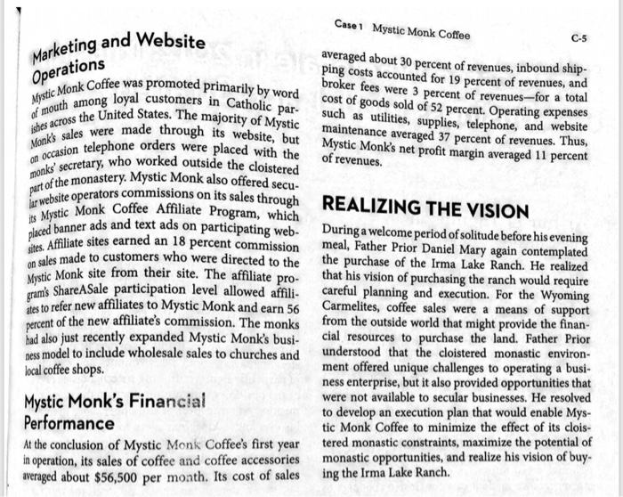 Solved Case 01 Mystic Monk Coffee Connect David L Chegg Com